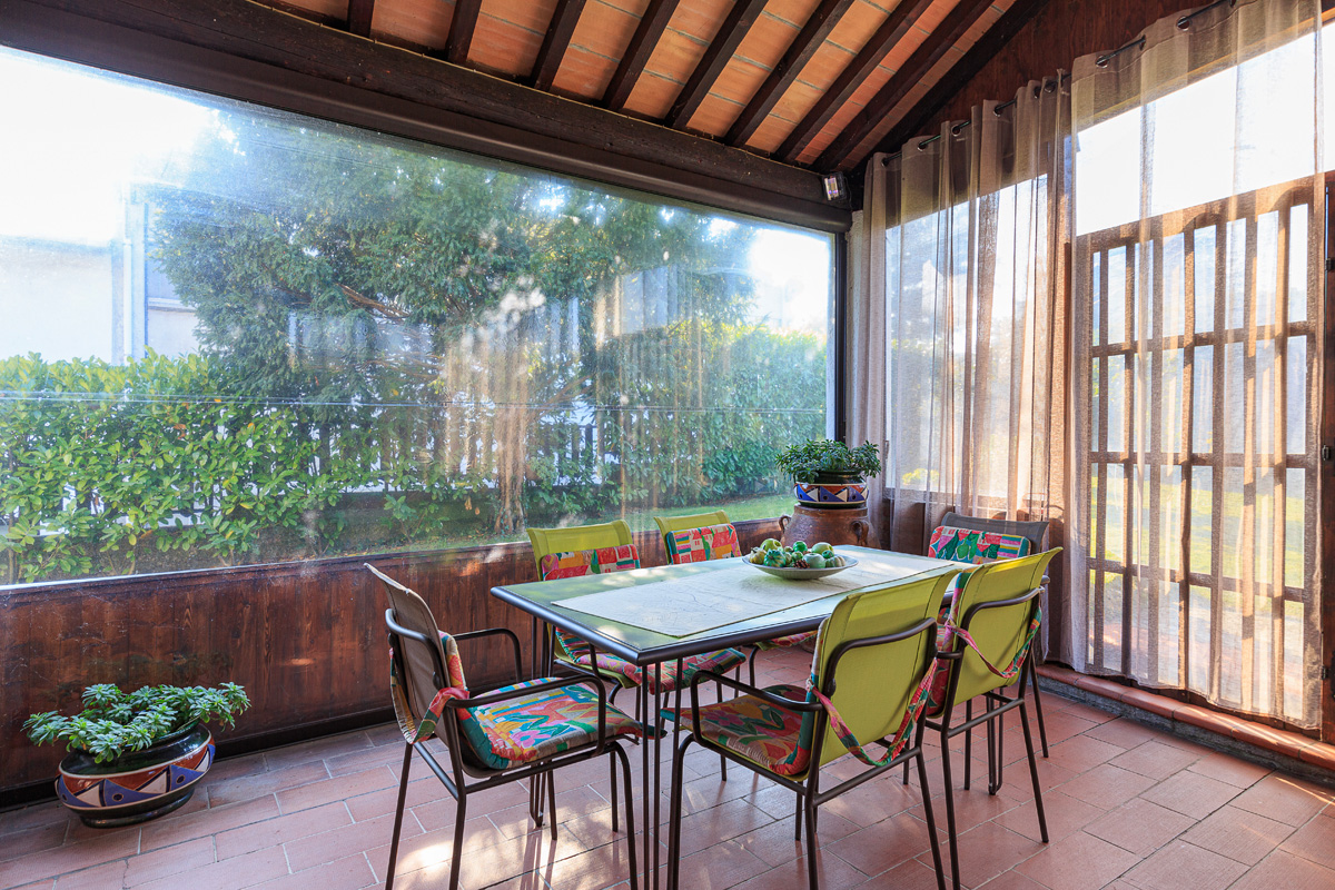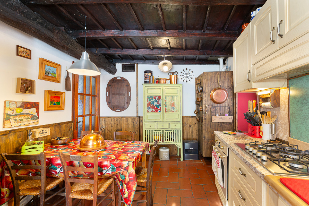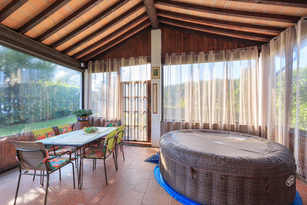 Parliamo di una casa dove i materiali parlano da soli: pavimenti in cotto originale, travi a vista, un camino importante, atmosfere calde e accoglienti. Gli spazi sono molto conviviali, grande e doppio salone, sala pranzo, cucina abitabile, un portico chiuso a veranda vivibile estate/inverno con vista sul giardino privato. Segnaliamo anche la presenza di una vasca benessere idromassaggio posta in veranda!