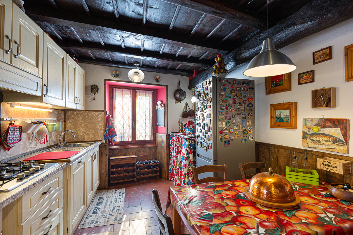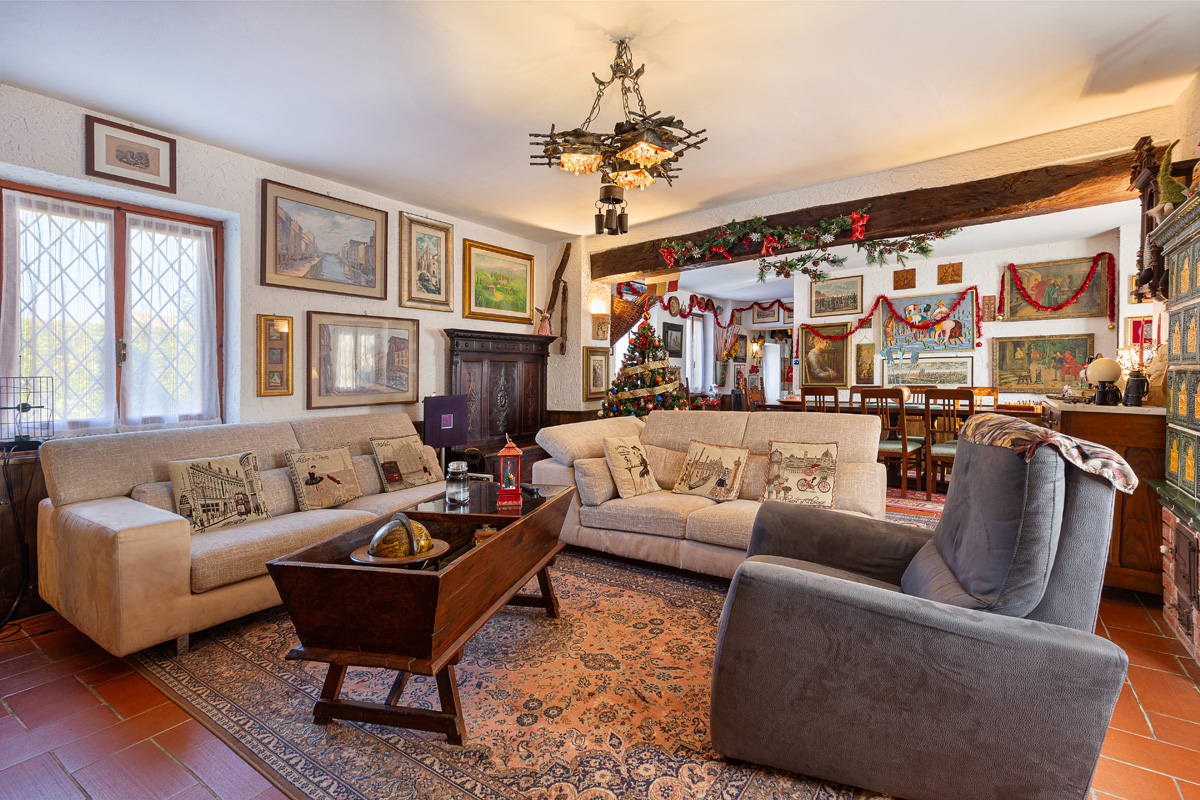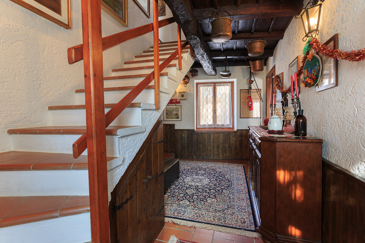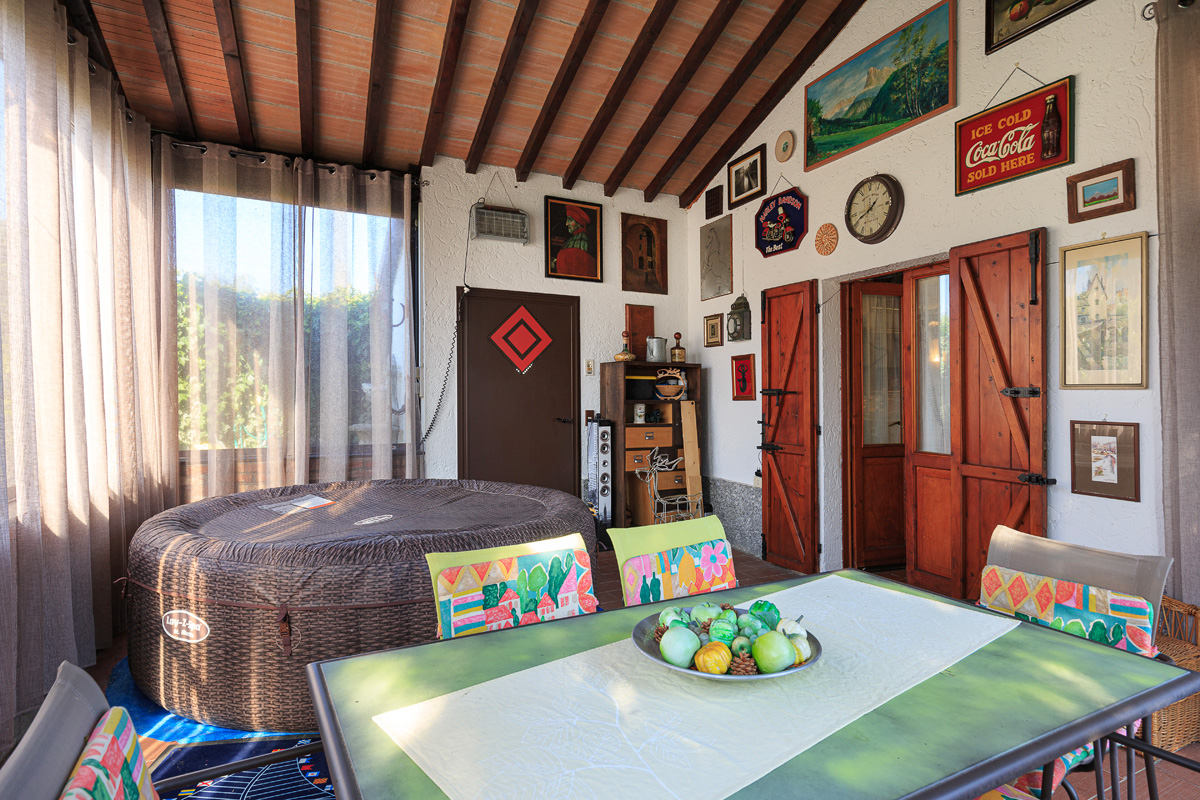 Parliamo di una casa dove i materiali parlano da soli: pavimenti in cotto originale, travi a vista, un camino importante, atmosfere calde e accoglienti. Gli spazi sono molto conviviali, grande e doppio salone, sala pranzo, cucina abitabile, un portico chiuso a veranda vivibile estate/inverno con vista sul giardino privato. Segnaliamo anche la presenza di una vasca benessere idromassaggio posta in veranda!