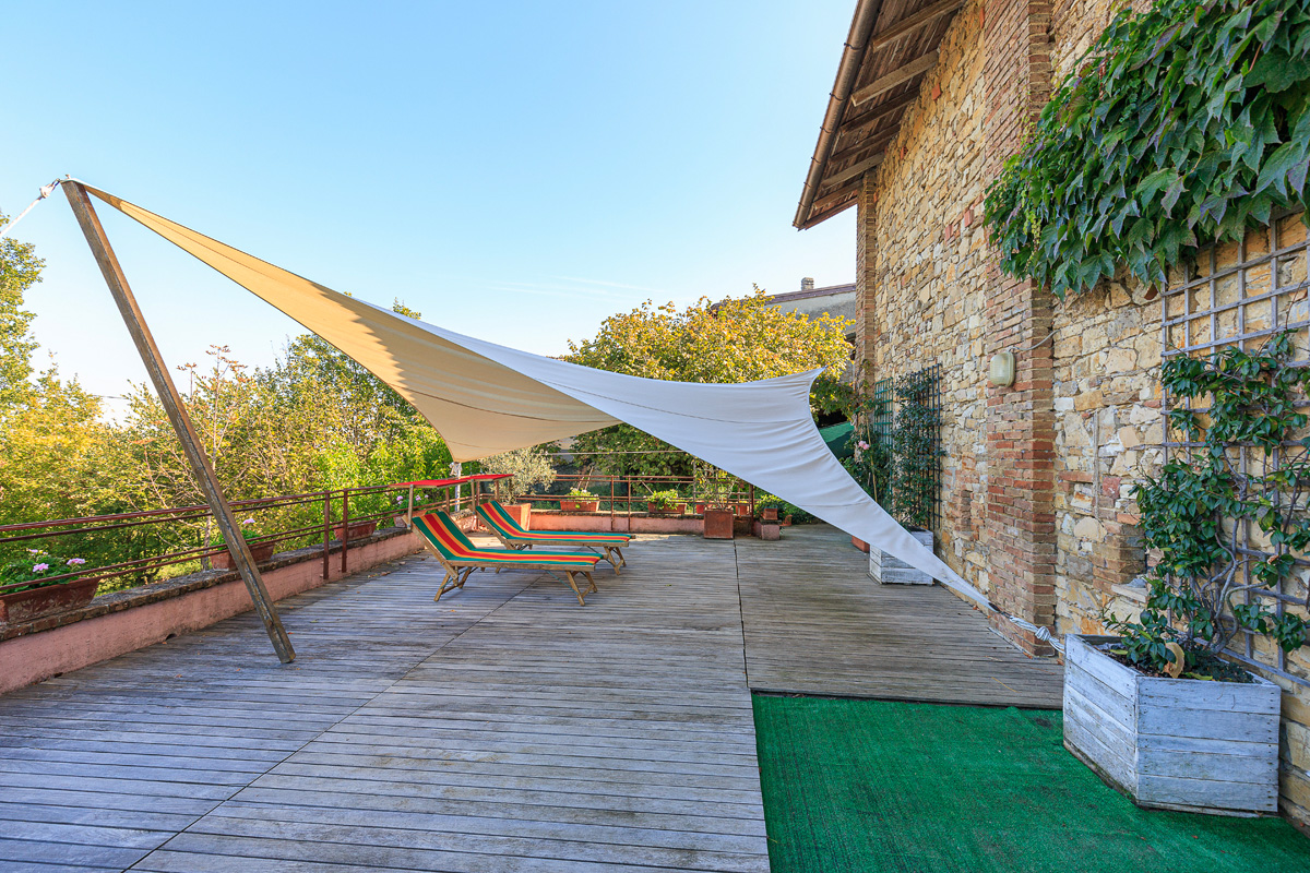 Padroneggia fuori dalla casa un porticato come una vela che collega il tetto della casa padronale con il tetto del rustico dove all’interno troviamo spazio per hobby, piccolo magazzino e servizi.