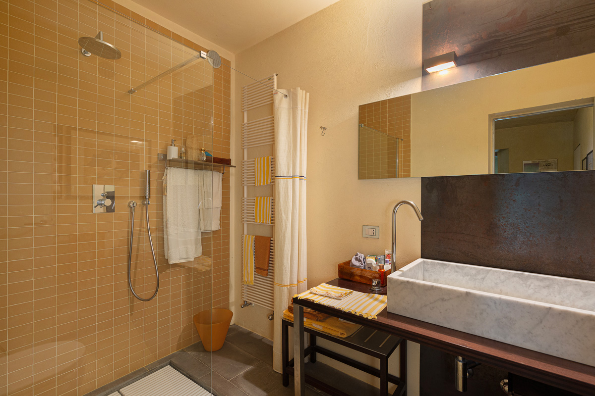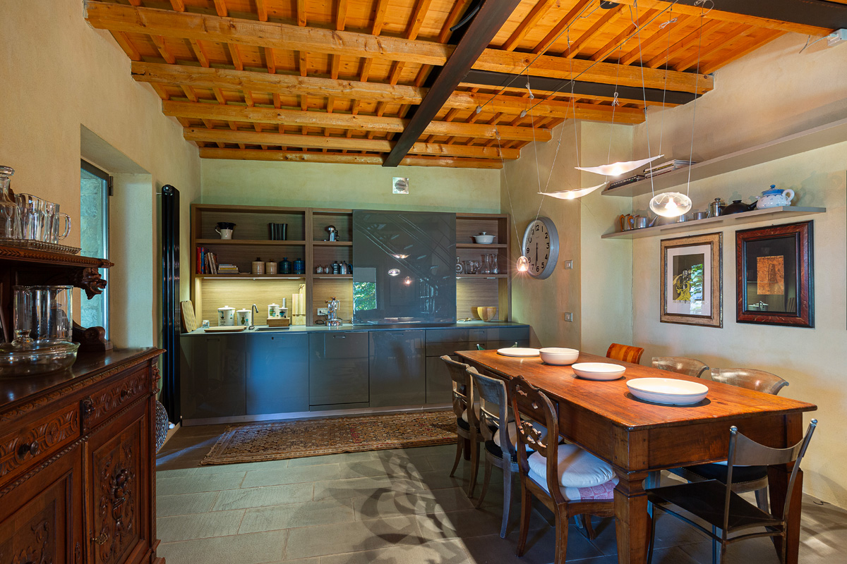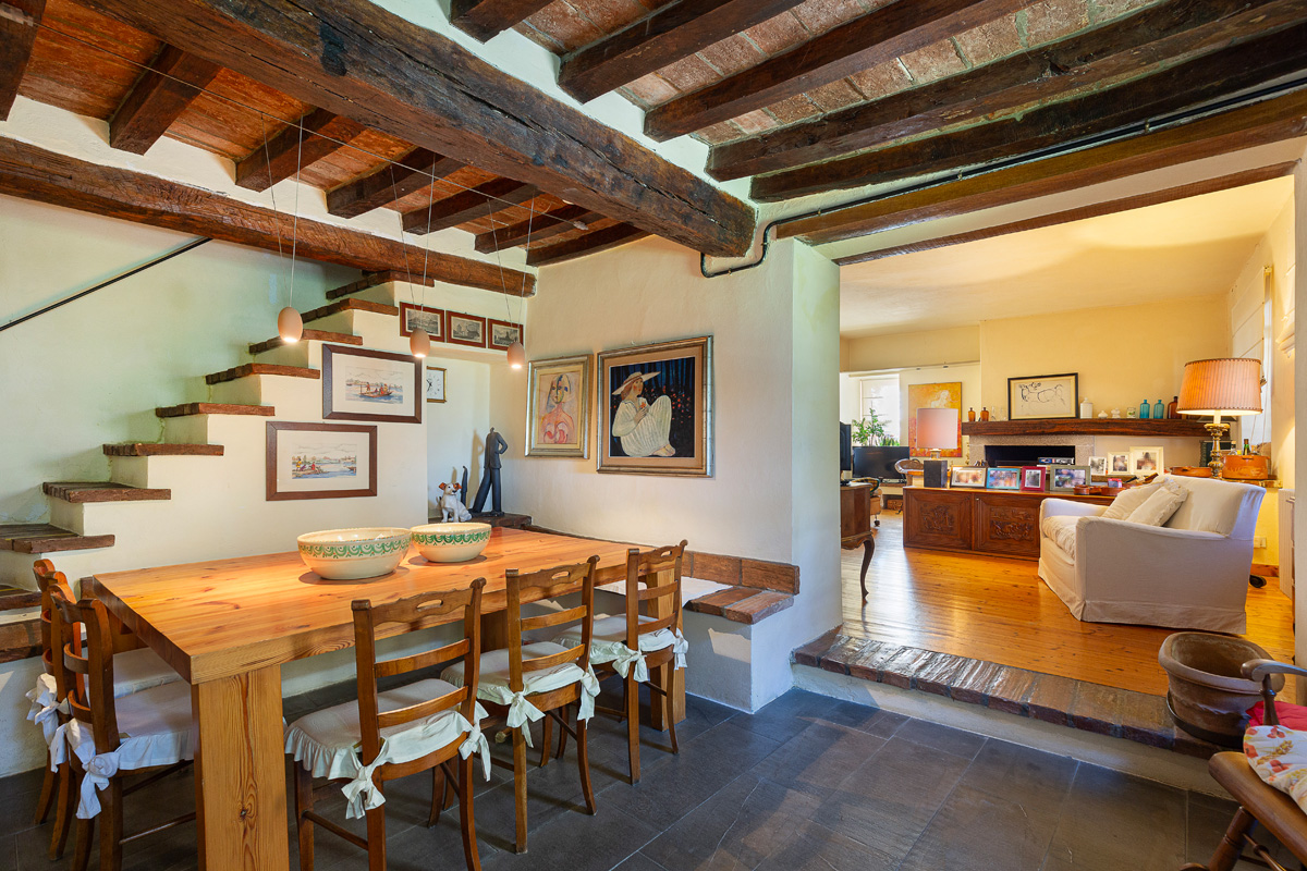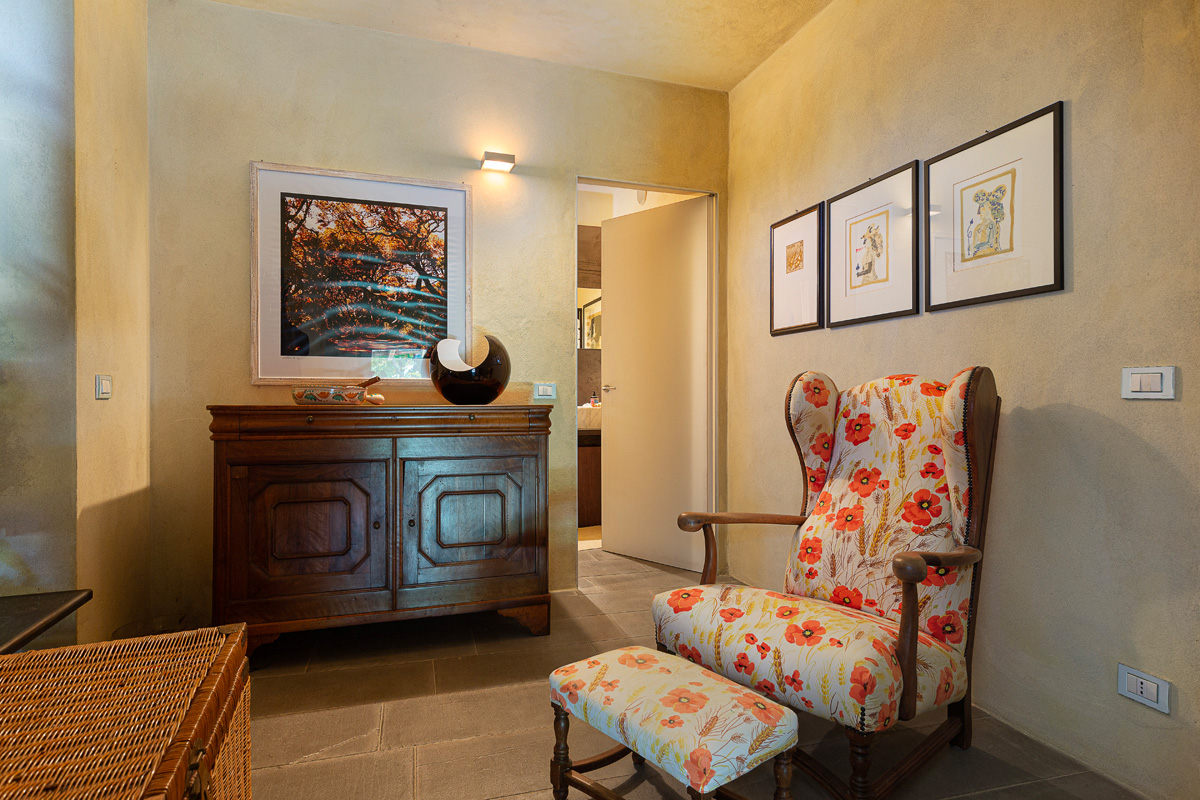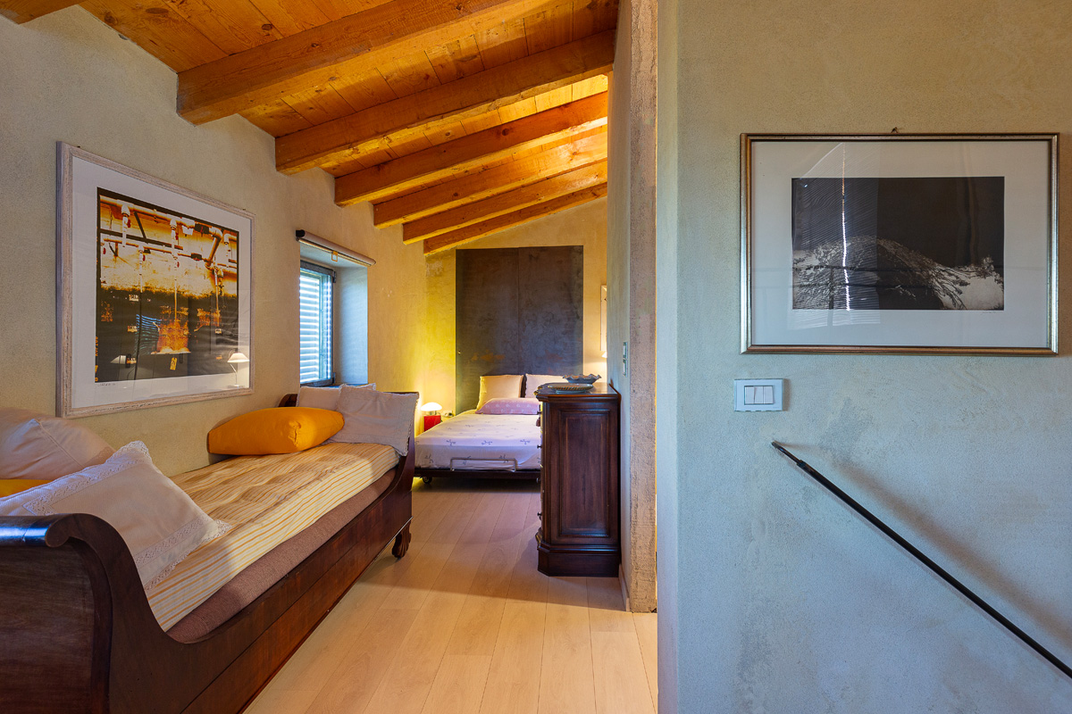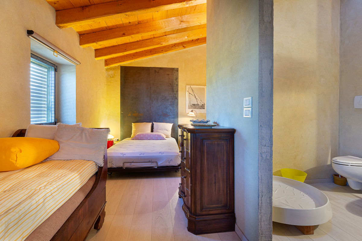 Il gusto e il tocco artistico nella progettazione degli interni, con la scelta dei materiali, dei colori, rendono questa proposta veramente unica. Le sale con le travi in legno massiccio a vista e le antiche ’’ tavelette’’ dei soffitti , tipiche della zona. Salire ai piani della zona notte della parte più antica della casa ci si sente come amanti che cercano il loro nascondiglio. Ogni angolo studiato e sfruttabile a piacimento.