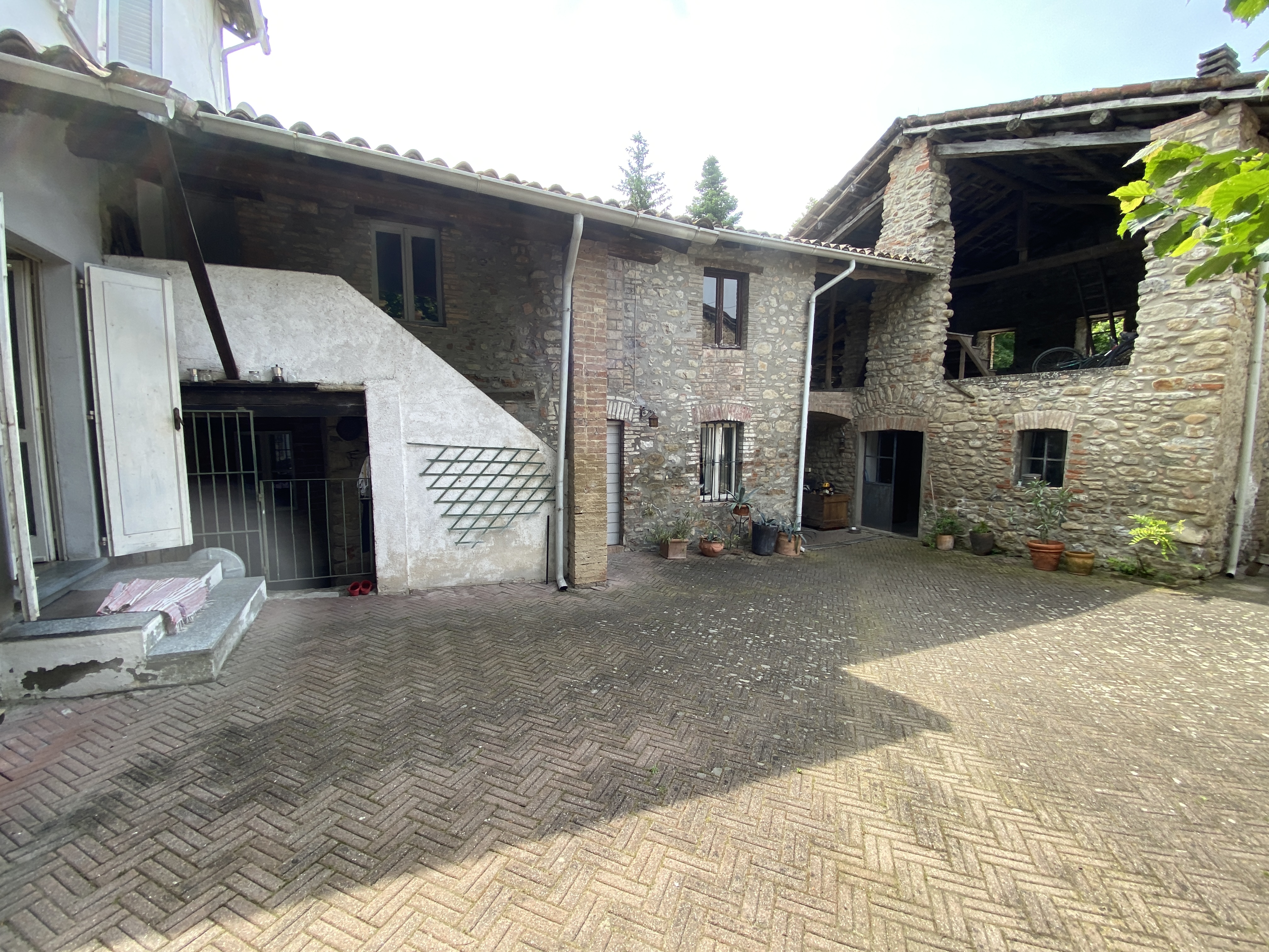 Il secondo edificio è il classico rifugio delle casa di campagna, la scala che sale conduce ad un ampio locale mansardato con travi a vista dall’spetto rustico, accessoriato da cucina e bagno; da qui accediamo alla terrazza coperta, con spettacolari scorci panoramici sulle colline. Il locale al piano terra, ex-stalla, è stata una piacevole ed inaspettata sorpresa! Numerosi pilastri sorreggono le volte a vela in mattoni a vista, il pavimento è in cotto originale, unicità e caratteristiche che regalano grande fascino a questi ambienti. Aggiungiamo che essendo il locale provvisto di bagno con doccia e riscaldamento, aggiungiamo un ulteriore spazio abitativo.