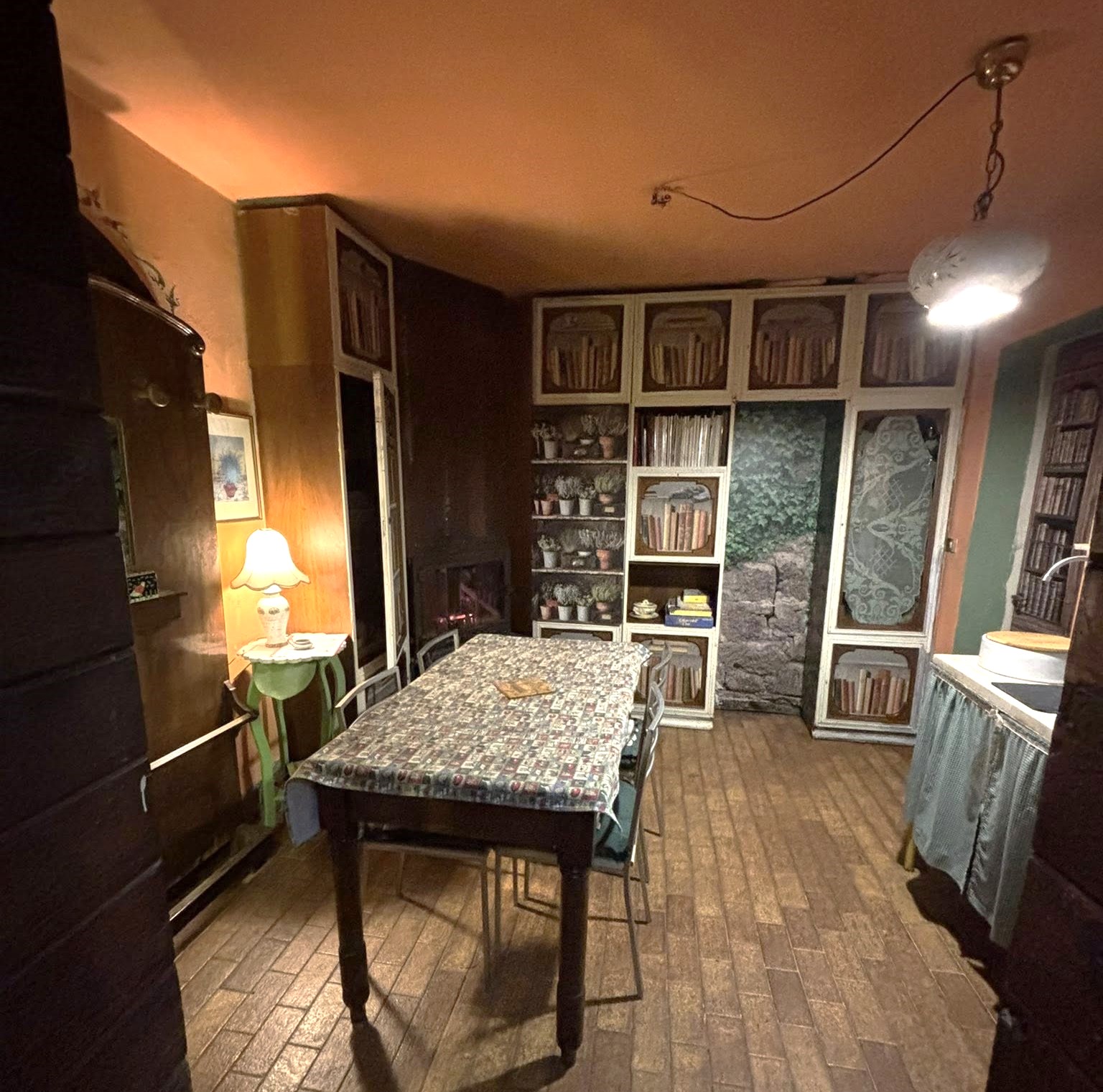 L’abitazione, di circa 300 mq, è articolata in più livelli e ambienti, con un fascino autentico fatto di scale, angoli riservati e spazi da vivere in modo dinamico. Stufe e camini, la grande sala con vetrate affacciate sul verde e le unità con terrazzo panoramico rendono ogni ambiente caldo, accogliente e profondamente connesso con l’esterno.