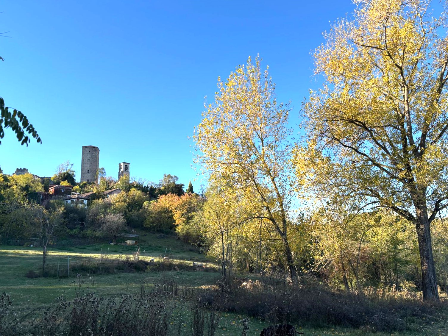 Sulle prime colline dell’Oltrepò, ai piedi della torre medievale del borgo, questa proprietà racconta un modo di vivere sempre più ricercato: spazio, natura e libertà.