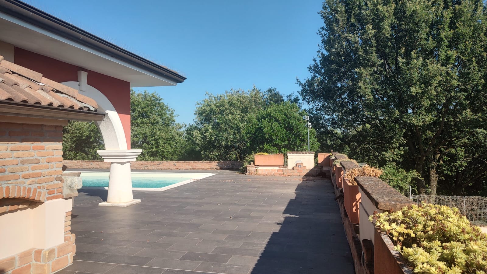 La proposta è una Villa di carattere con ampi spazi, 5 camere, 4 bagni e salone doppio con camino dominante e ampie vetrate panoramiche che si affacciano sul verde e sulla piscina. L'atmosfera è elegante, senza togliere il piacere bucolico del verde tutt'intorno. Nel seminterrato, un appartamento con ingresso indipendente ideale per accogliere genitori, ospiti o per riservare uno spazio privato ai nostri figli, inoltre garage di 113 mq e cantina.